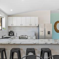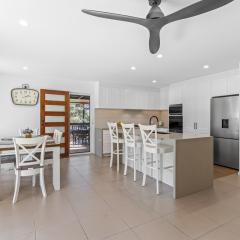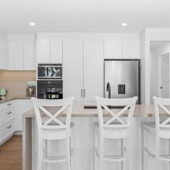 • Stunning family kitchen with stone waterfall benchtops, gas cooktop & wok burner