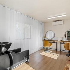 • Freestanding hairdressing studio with storage/utilities room, toilet, sink & deck entry